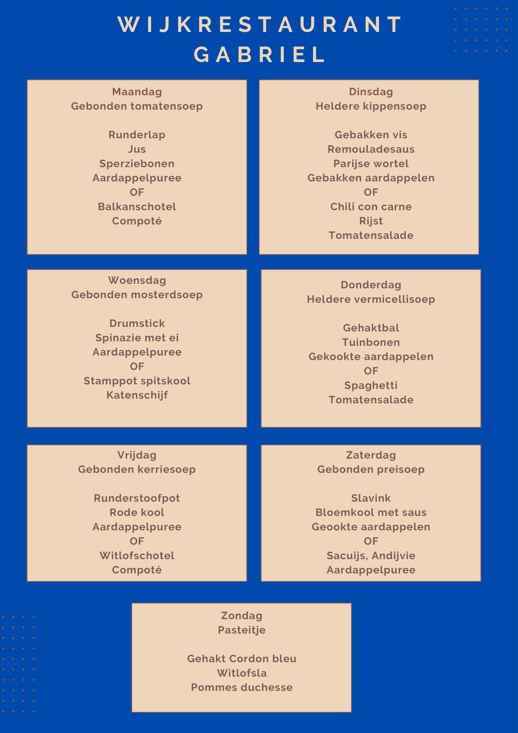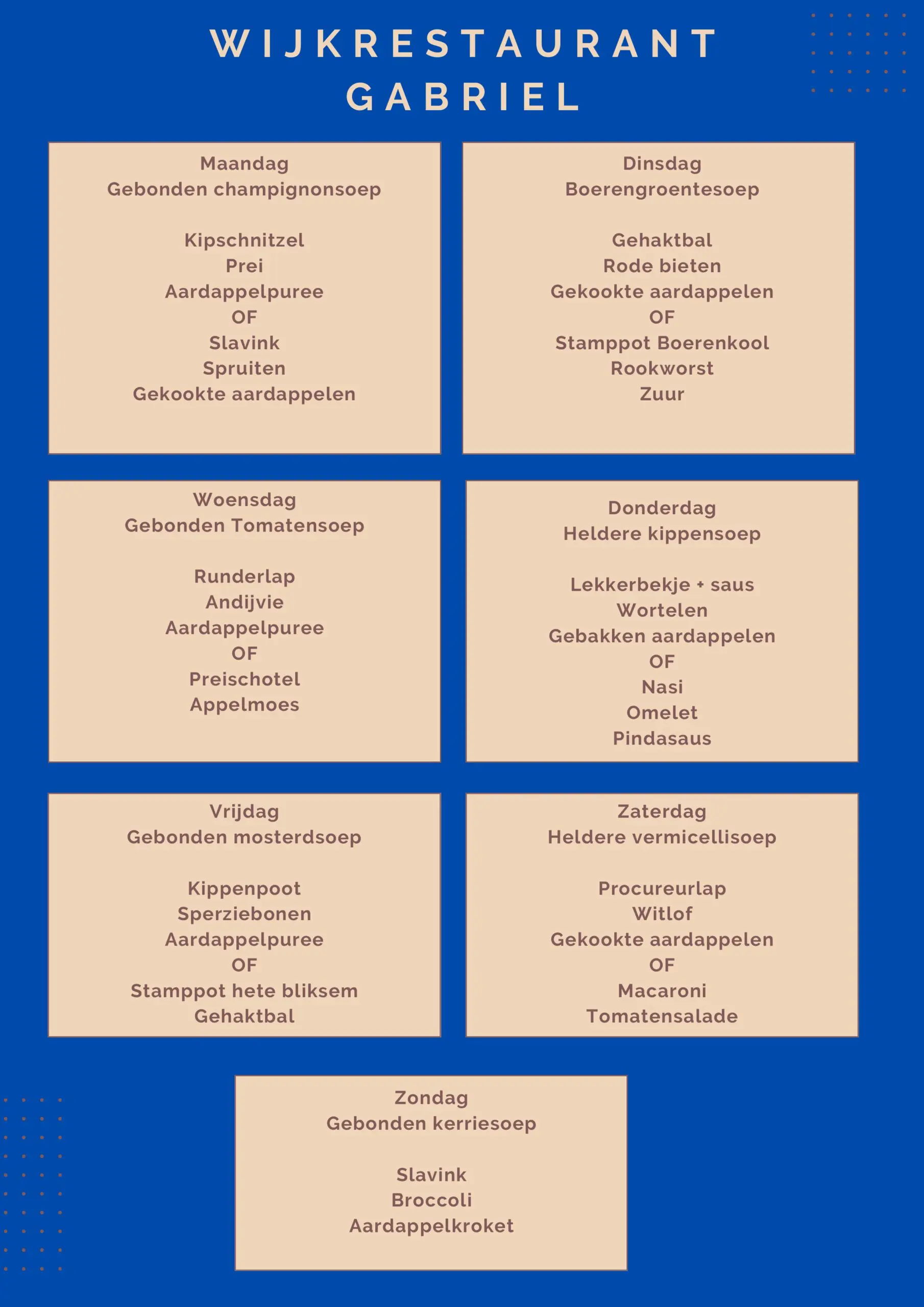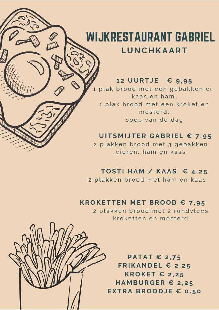 Elke dag een soep + toetje van de dag. + Menu voor 13,75.-